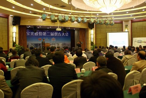 我公司第二屆供方大會于12月17日在寶雞高新區(qū)君悅酒店隆重召開。來自全國各地的76家供應商的100余位代表,寶光集團董事長佟紹成,股份公司副總經(jīng)理張軍及采購部、質量管理部、技術部、生產(chǎn)運營部等相關部門的領導和有關工作人員參加會議。