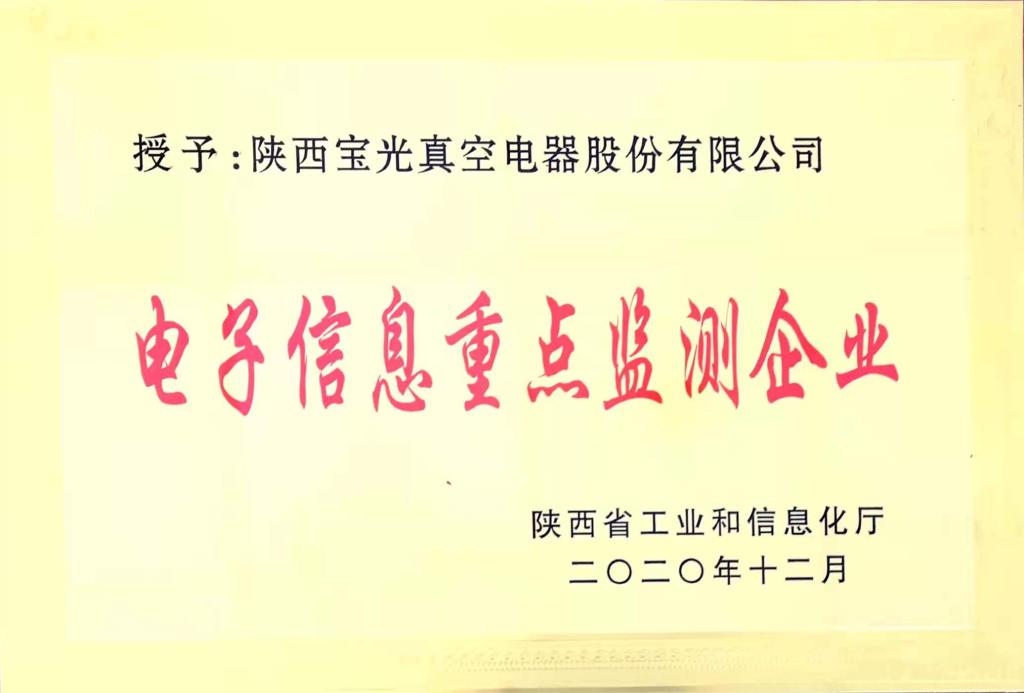 2020年12月21日,陜西省工信廳“2020年全省電子信息重點(diǎn)監(jiān)測(cè)企業(yè)統(tǒng)計(jì)調(diào)查暨運(yùn)行監(jiān)測(cè)會(huì)議”在西安召開,我公司入選會(huì)議30戶重點(diǎn)監(jiān)測(cè)企業(yè),企業(yè)管理處負(fù)責(zé)人代表我公司上臺(tái)領(lǐng)取授牌。